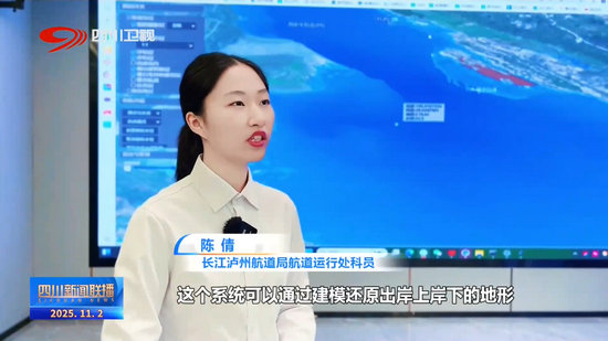 长江泸州航道局航道运行处科员 陈倩:这个系统可以通过建模还原出岸上岸下的地形,下一步我们也会把航标的实时位置以及无人机、无人船的数据接入系统,构建出一个实时涵盖各类航道要素的数字孪生系统。