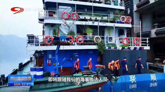 记者 侯雨森:我们现在停靠在宜宾港,刚刚从这艘海事船登上了代号为666的货船,即将跟随我们的海事执法人员开启一场水上的执法检查。