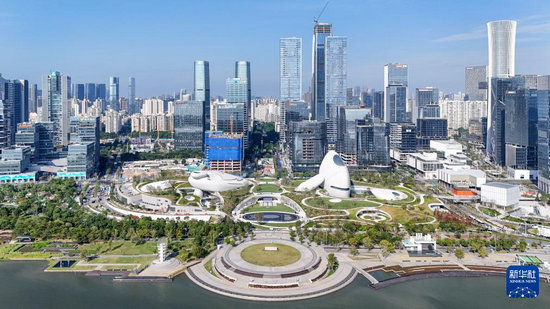 这是11月1日拍摄的深圳湾文化广场(无人机照片)。
