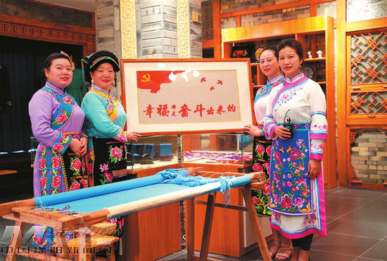 陈云珍的羌绣作品《幸福都是奋斗出来的》
