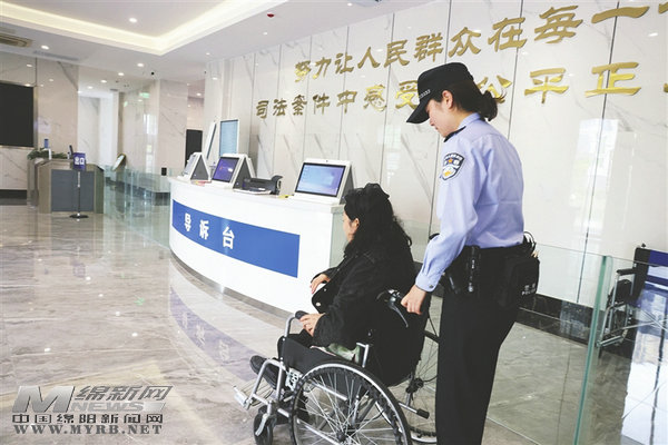 如果说“7×24”小时全天候自助服务拉近的是当事人与法院之间的物理距离,那么“服务不仅在窗口之内”的承诺,就是绵阳法院主动对接需求、将工作向前延伸的体现:针对特殊群体,开通绿色通道;在诉讼服务中心设置清晰醒目的指引标识,提供要素式起诉状、答辩状文书示范文本并引导帮助;实行公益律师轮流在诉讼服务大厅“值班”,每年提供法律咨询三千余次;对诉讼服务中心窗口功能进行整合,单独设置“办不成事反映专窗”,专门接收人民群众诉服方面合理诉求并协调办理反馈;同步与行政审判部门积极配合,在诉讼服务中心设立行政诉讼实质化解工作站,由退休法官每日在岗负责行政诉讼的引导分流和协调化解……这些点滴细节,汇聚成诉讼服务中心的“为民温度”。