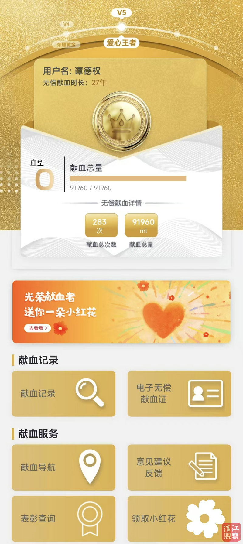 除了号召大家加入无偿献血队伍,谭德权自己也坚持献血了27年,献血次数283次,累计献血量达91960毫升,相当于23名成人全身血量总和,为459位陌生人筑起了生命的防线。