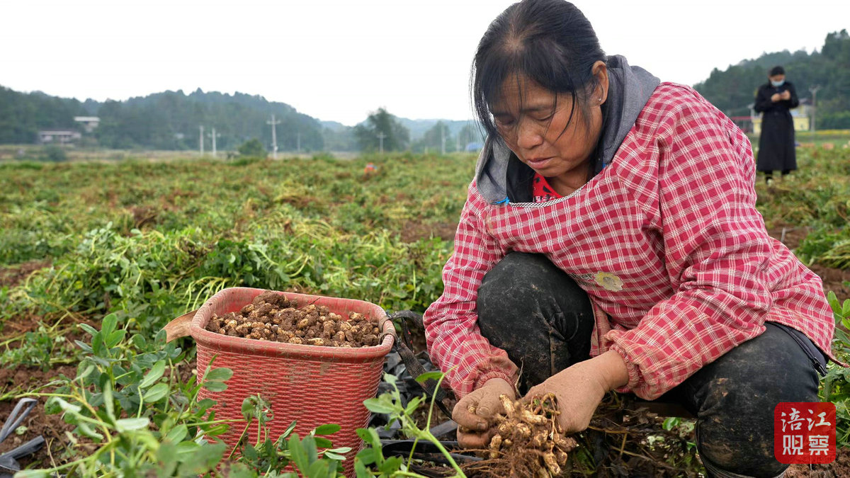 据了解,水果花生是麻石桥村2021年引进的四川省农业科学院培育的新品种“蜀花9号”。它属于中粒型珍珠豆高糖低脂红花生品种,不仅口感柔软多汁,而且营养价值非常高,富含多种维生素和矿物质,深受消费者喜爱。今年全村共种植400亩秋花生,良好的产业前景带动了周边村民就业增收。