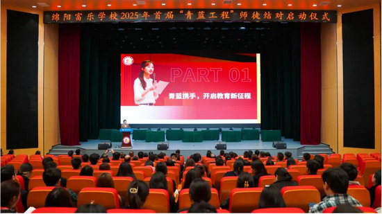 绵阳新闻网讯 为了助力青年教师专业成长,传承优秀教育教学经验,搭建互助共进发展共同体,10月29日,绵阳富乐学校高中部在演艺中心多功能厅隆重举行了以“传承·赋能·共创”为主题的2025年首届“青蓝工程”师徒结对仪式。总校党委书记、富乐教育研究院院长梁春艳,高中部行政团队、全体教职工共同参加此次活动,见证这一传承教育使命的重要时刻。