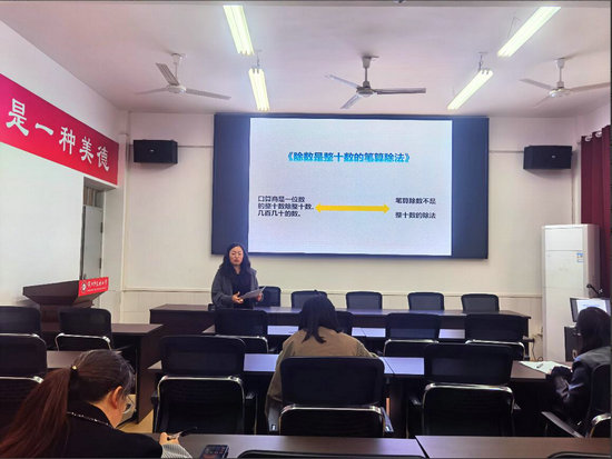 说课环节结束后,进入集中研讨与点评环节。全体教师围绕两节说课内容,聚焦“算理与算法的有机融合”“几何图形教学中思想方法的渗透”等关键问题展开深入交流,在场教师均有所悟、有所获。
