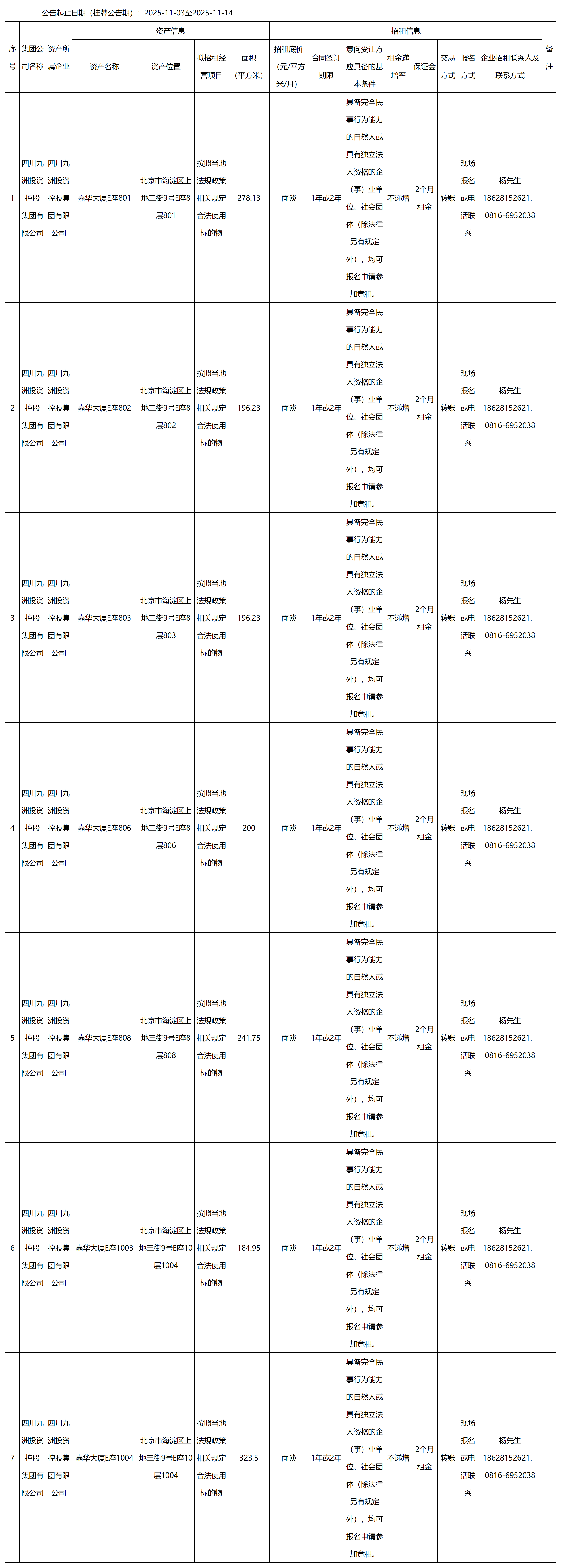四川九洲千城商业管理有限公司北京项目部北京嘉华大厦E座房屋出租公告