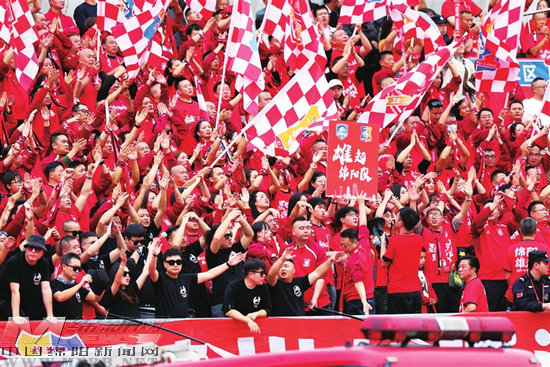 现场球迷呐喊助威。记者 陈冬冬 摄