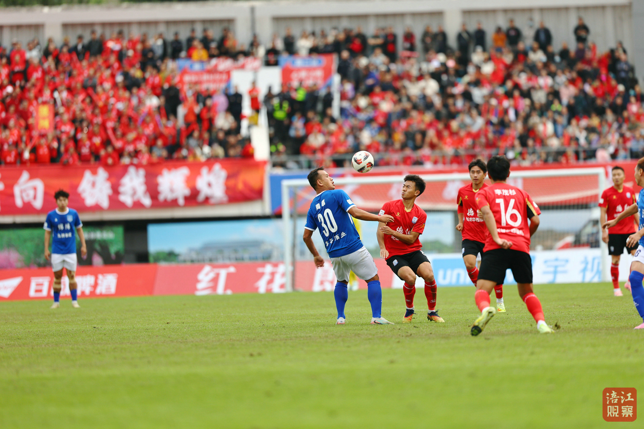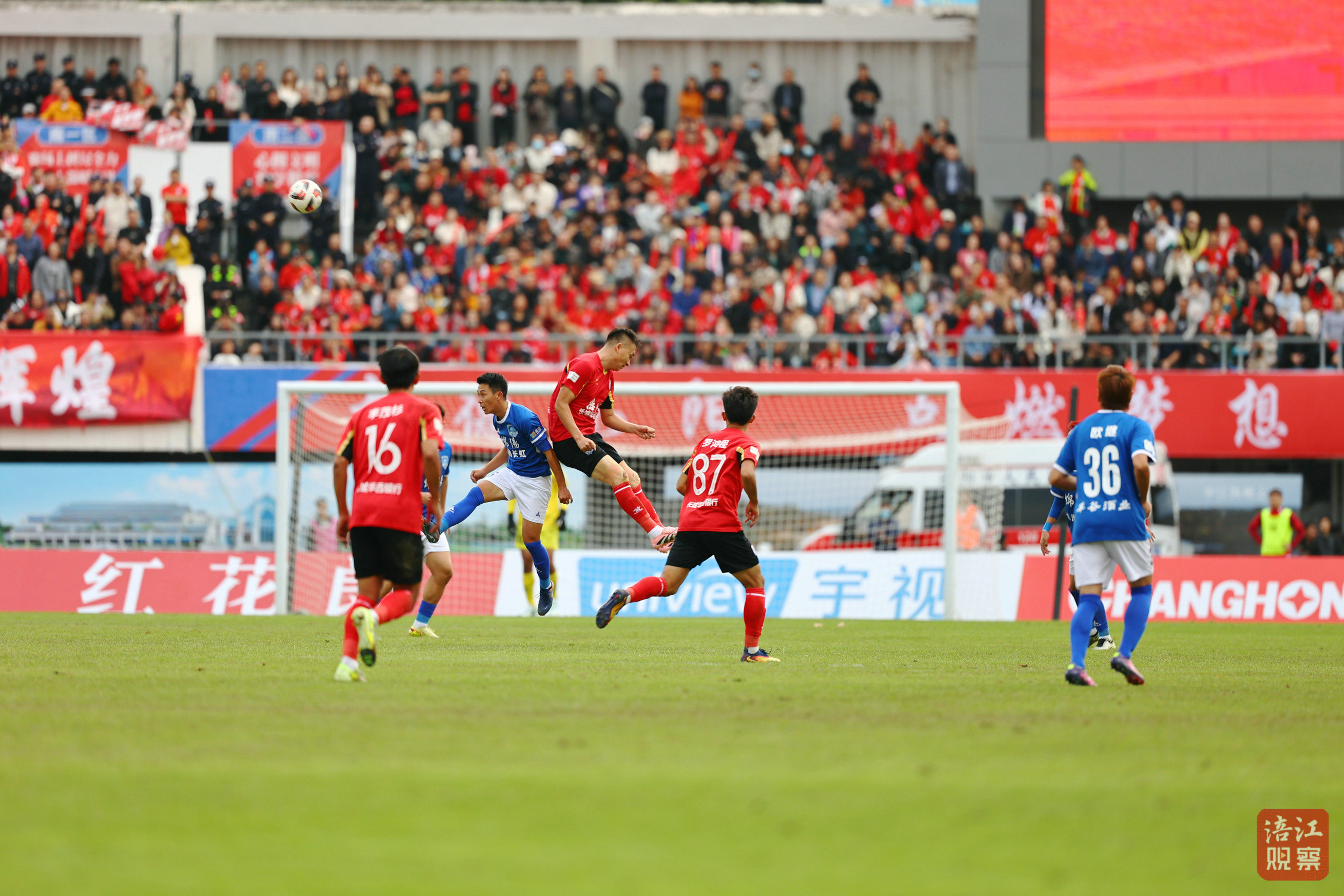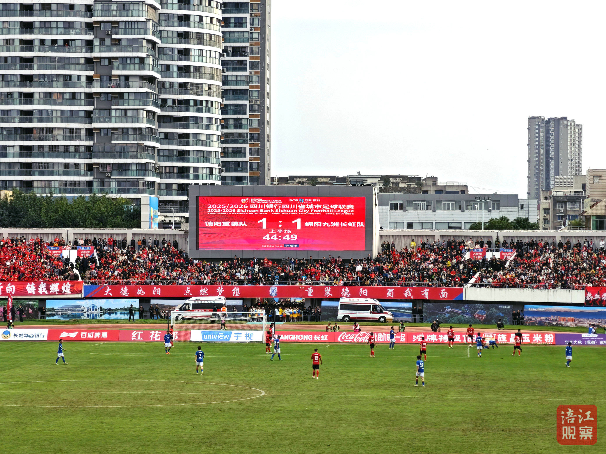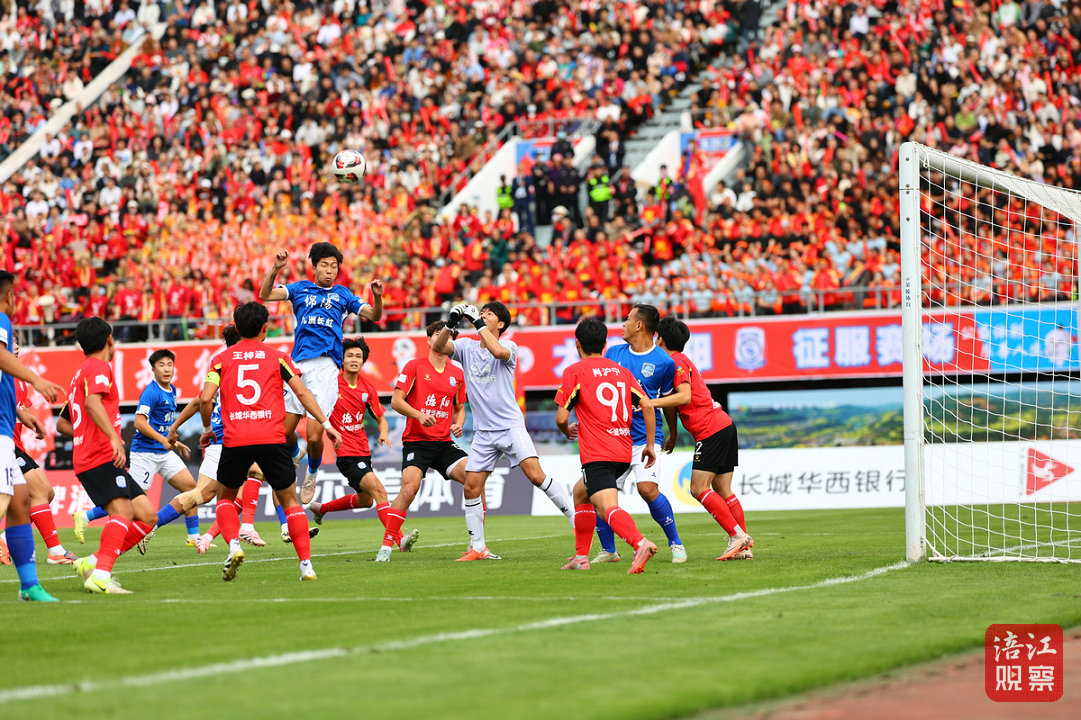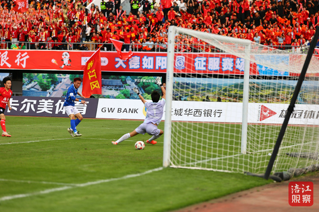 比赛第42分钟,德阳队在禁区踢进一球,将比分追平。