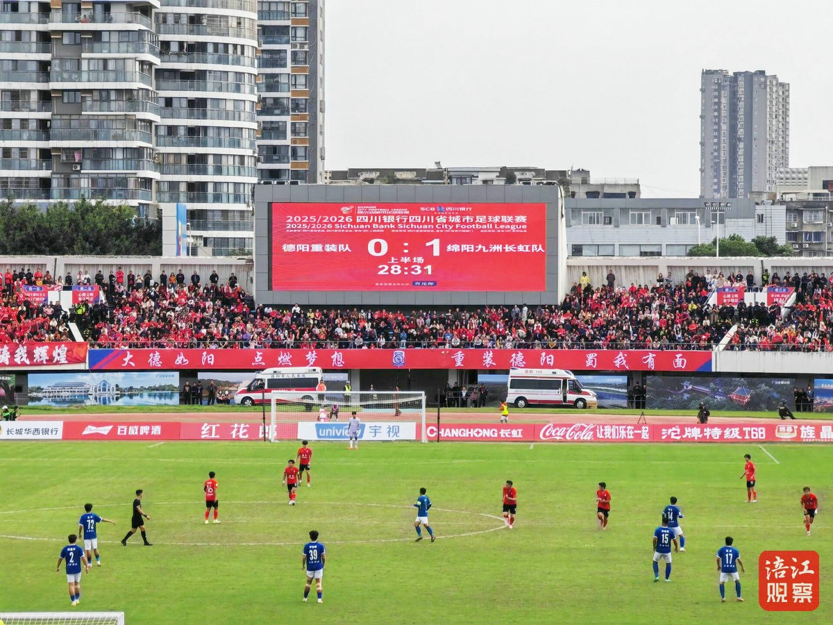 11月9日下午3点,绵阳九洲长虹队客场对阵东道主德阳重装队的比赛,在德阳市体育公园体育场精彩上演,两地球迷齐聚现场,共同见证这场绿茵盛宴。