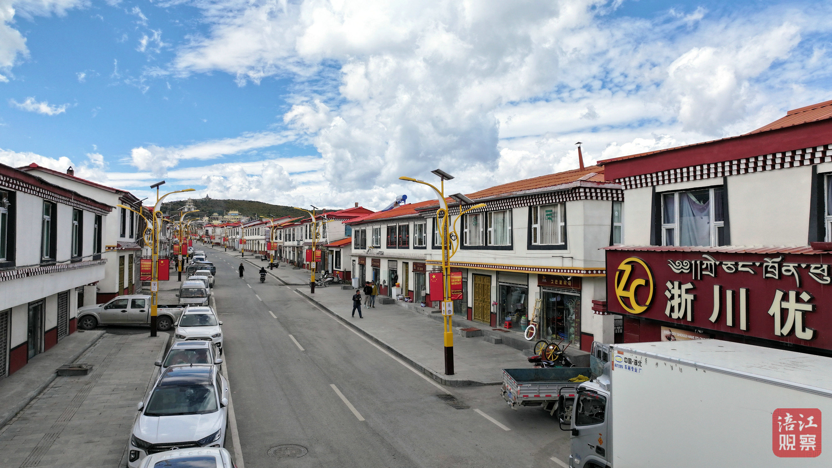 如今,走在色地镇的街道上,独具安多藏族特色的建筑立面、整洁宽敞的街面、功能完善的应急广场,共同构成了一幅“高原风情小镇”的崭新画面。