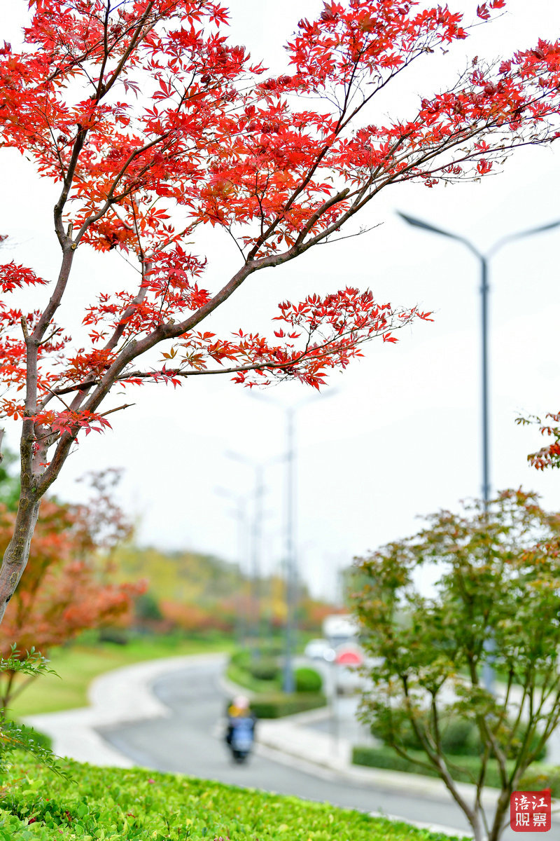 红枫如火,落叶覆地