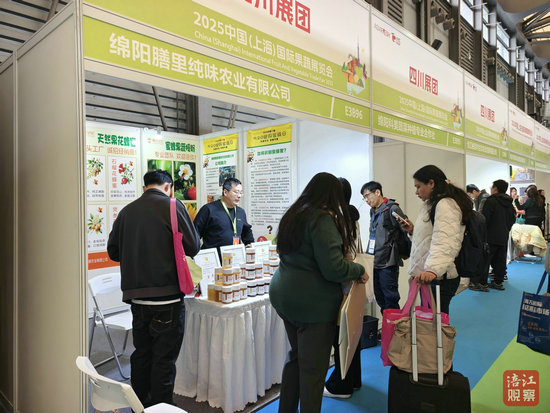 绵阳新闻网讯 11月12日,2025中国(上海)国际果蔬展览会在上海新国际博览中心开幕,绵阳市多家优质果蔬企业携特色产品参展,供各地采购商参观洽谈。