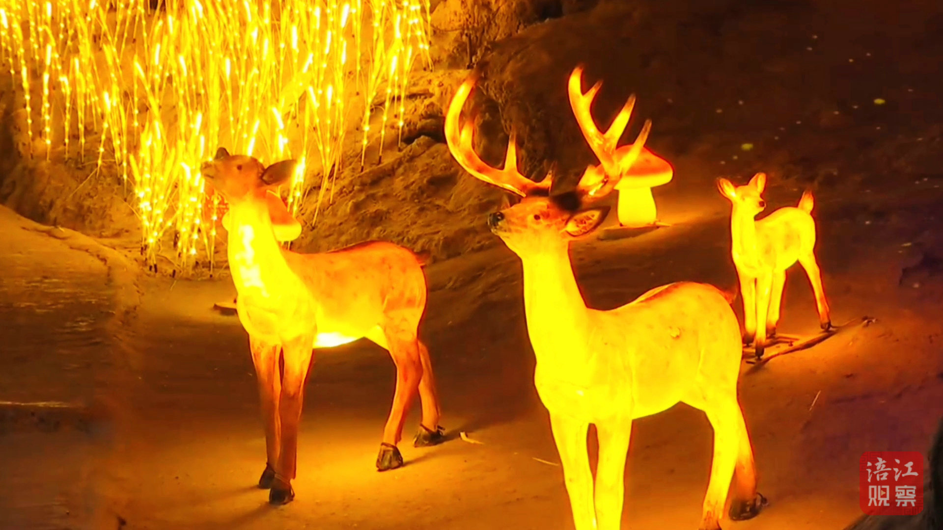 该景区以天然溶洞奇观为主调,进行“以势造景”,彩色灯光与精致美景交融演绎,森林、瀑布、麦浪、花海……构成一帧帧如童话世界的梦幻仙境。不少亲子家庭徜徉其间,拍照打卡忙得不亦乐乎!
