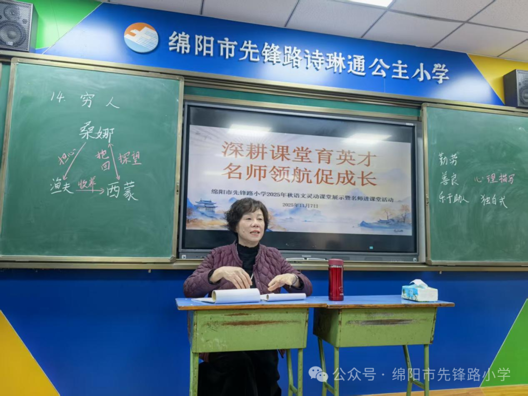 11月7日上午,绵阳市先锋路小学语文教研组举行了以“名师引领点教学 灵动课堂绽华彩”为主题的2025年秋教学研讨活动。该校特邀特级教师、高质量发展指导专家黎琼老师莅临指导,通过课堂示范与精准点评,为语文教学注入新思路、新动力。