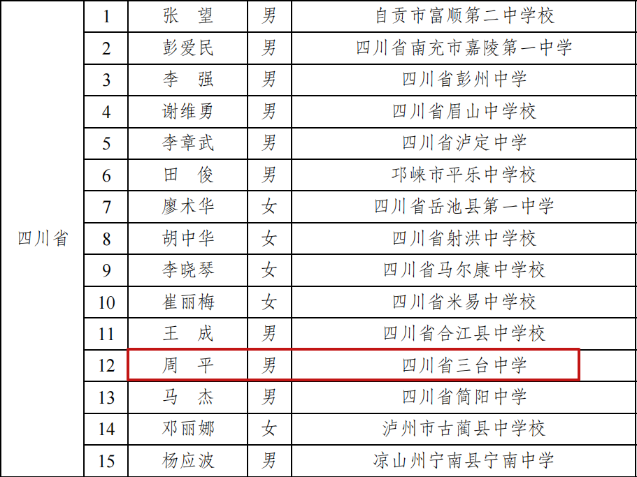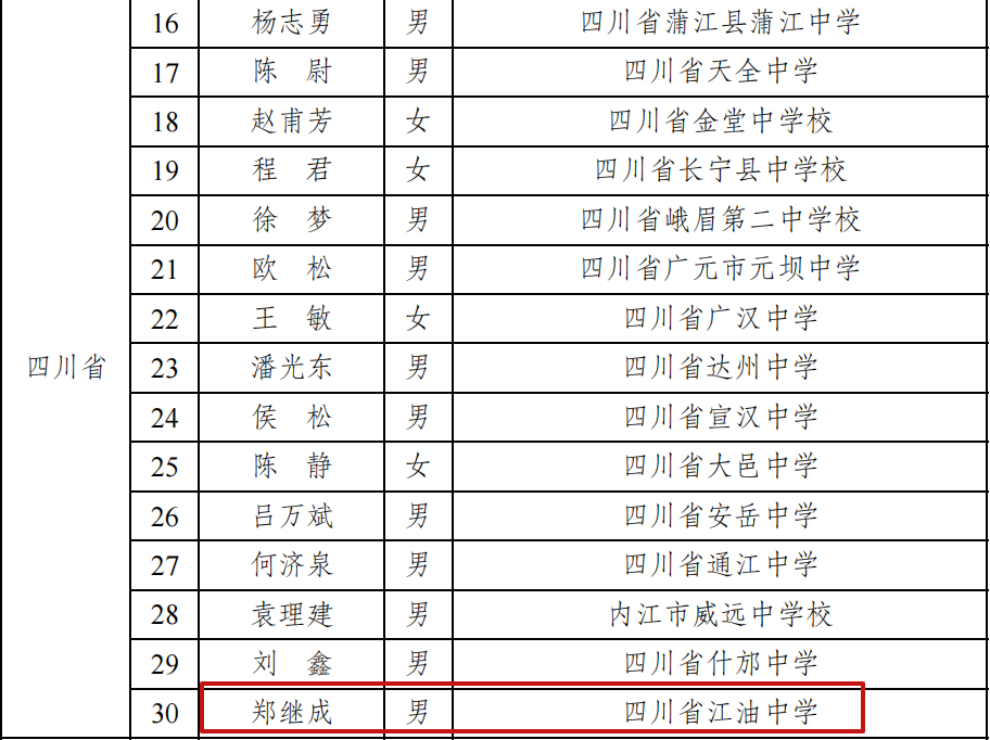 四川省入选教师