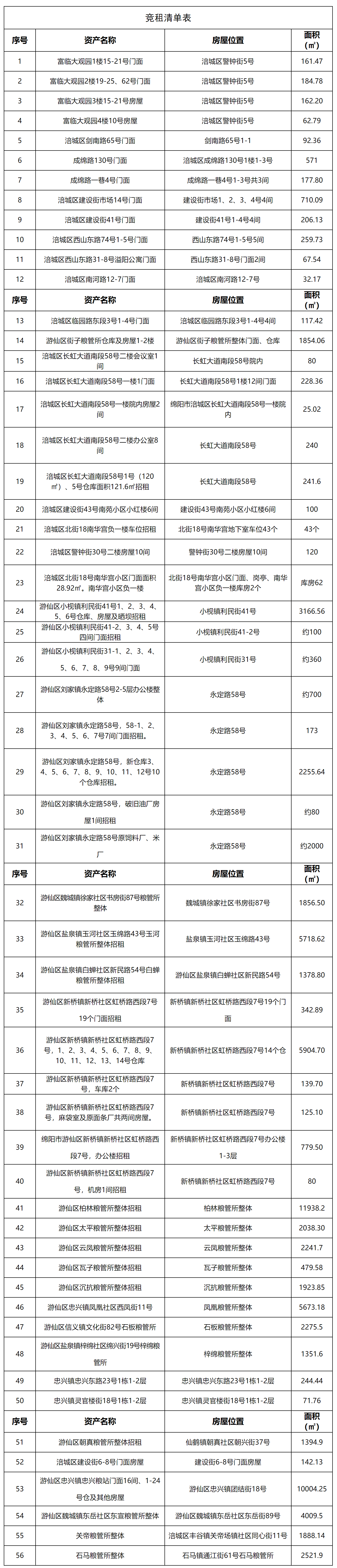 绵阳市众一粮油有限公司现有门面、仓库、住房及其他资产面向社会公开竞租(详见竞租清单)