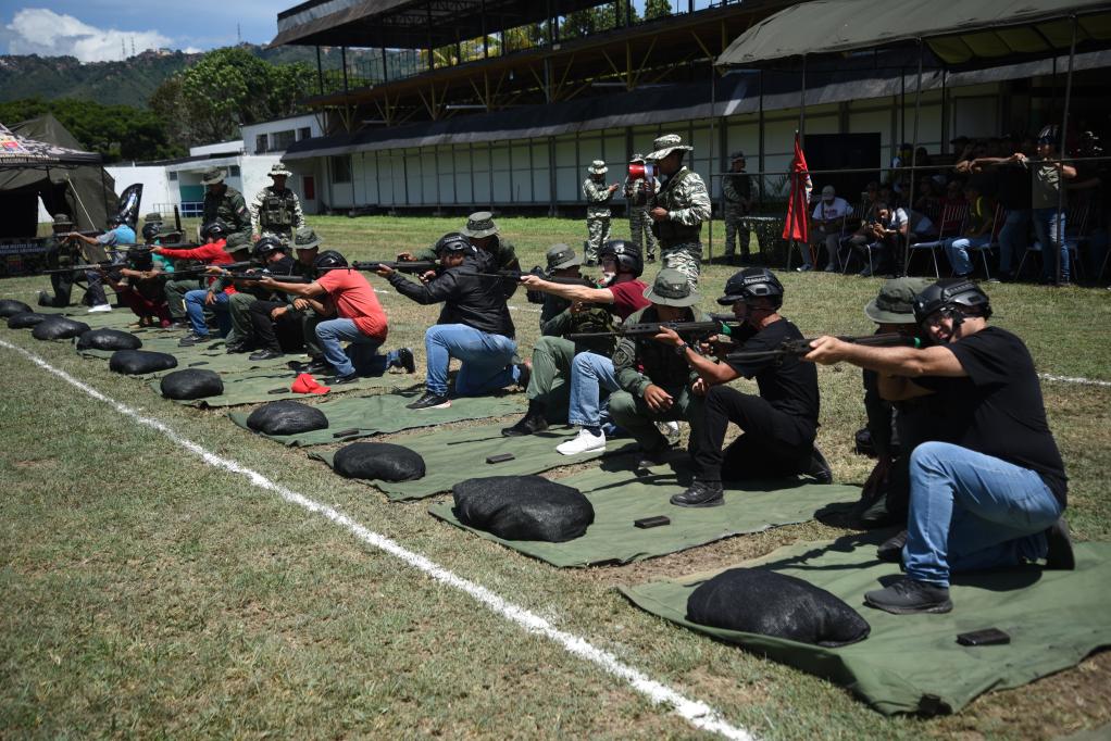 9月13日,委内瑞拉民兵在位于首都加拉加斯的蒂乌纳堡陆军基地进行射击训练。新华社发(萨尔戈多摄)