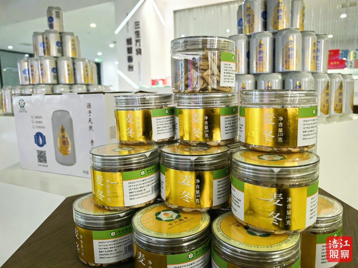 “近年来,百姓对大健康产品的需求增加,我们公司每年要收购麦冬上千吨。为进一步提升药材附加值、延伸产业链,公司投资2000多万元建成了这条生产线。”中兴药业有限公司董事长刘占兴介绍,作为绵阳首条麦冬药食同源大健康产品专业生产线,其引入了国内最先进的全自动设备,可批量生产金脉煌草本饮料、精麦皇口服液、麦冬袋泡茶等系列产品。满负荷运行时,日产量达10万罐,彻底结束了当地麦冬需送往外地进行精加工的历史。“这条生产线打通了麦冬从田间到餐桌、商超、药店的全产业链条,能直接助力产区40余万群众增收致富。”