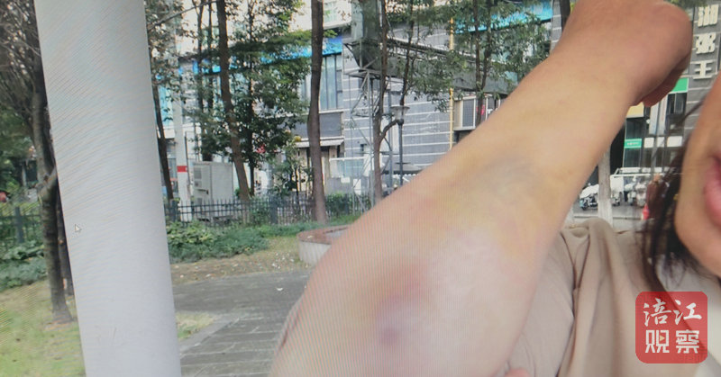 65岁的邓阿姨回忆,10月12日,她在此行走时脚下一滑,重重摔倒。“幸好是手肘先着地,没伤到头,但手肘当时就肿得很高。”时至今日,她手上的淤青仍清晰可见。