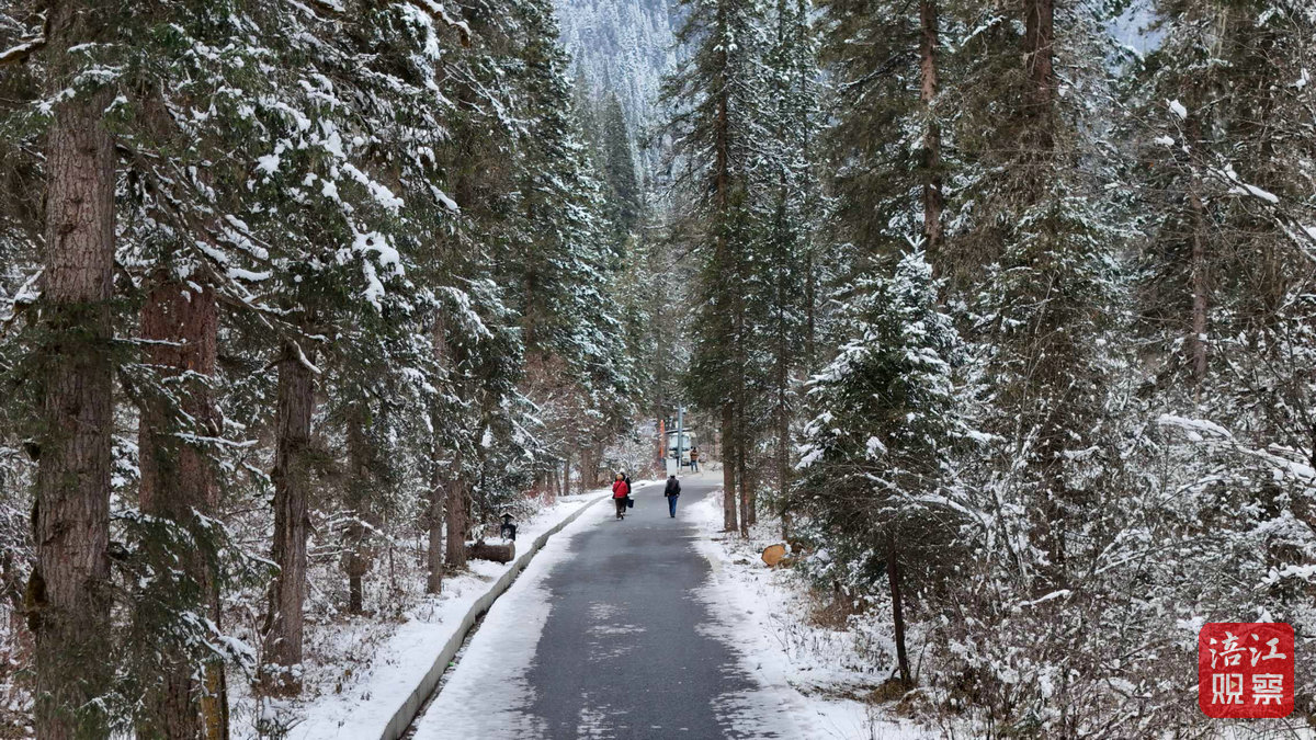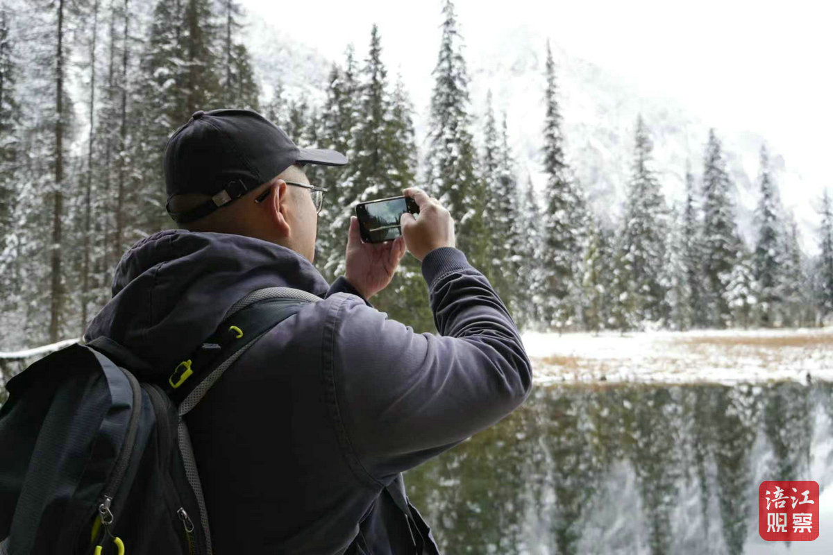 在大熊猫国家公园王朗片区,记者一行先后来到牧羊场和甘海子,经过前一天的降雪,王朗已然成为一片洁白的冰雪世界。