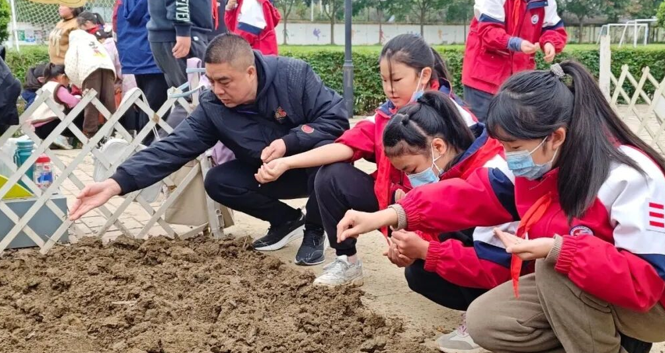 交流结束后,先锋路小学师生走进龙门学校的劳动实验基地,开展沉浸式劳动实践。同学们手持农具,分工协作,在松软的泥土中收获饱满的红薯,并在老师的指导下学习小麦播种技巧,亲手将种子埋入土壤。劳作过程中,欢声笑语与农具的碰撞声交织在一起,同学们不仅亲身体验了农事劳作的艰辛与乐趣,更在实践中深化了对“劳动创造价值”的认知。