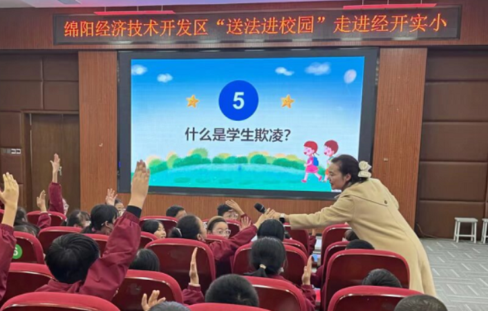 绵阳新闻网讯 为切实增强未成年人法治观念,筑牢校园安全防护网,11月7日,经开实小特邀法治副校长、绵阳经开区司法所蒋雪琴所长,为五、六年级学生带来一场干货满满的“送法进校园”专题讲座,用法治力量为学生健康成长保驾护航。