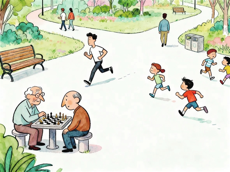 所谓“口袋公园”,既言其袖珍,也喻其方便。它们规模不大、形状灵活,可能是街角一块小型绿地,可能是社区里的街心花园,也可能是配套简单设施的小型运动场地。在这些“小而美”的“口袋公园”里,老人下棋聊天,年轻人跑步放松,孩子们追逐嬉笑。不必远行,诗意就在家门口,也让社区居民真正实现了“推窗见绿,转角遇景”。