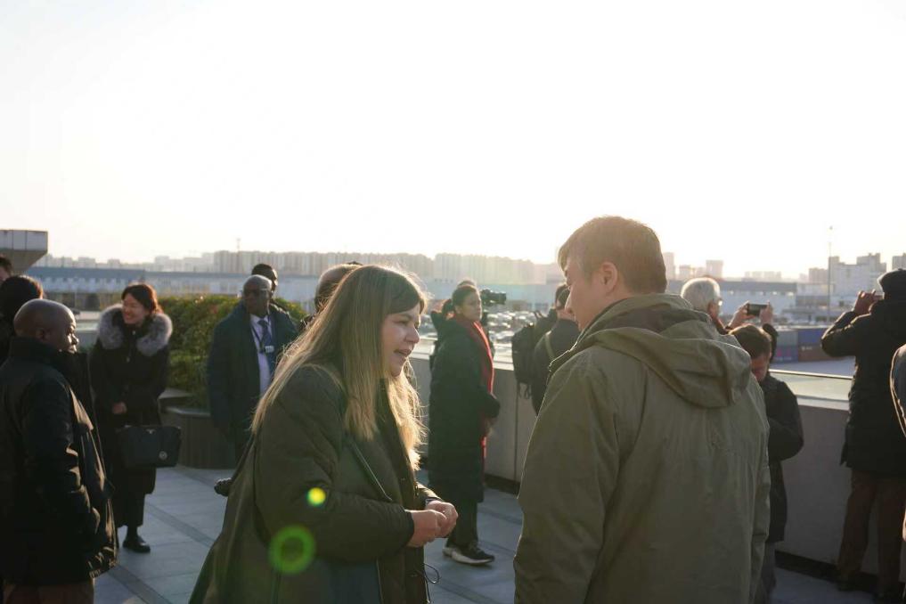 11月17日,驻华外交官在中欧班列西安集结中心参观交流。(赵瀚泽 摄)
