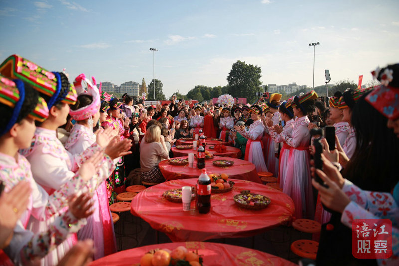 随着羌绣省级代表性传承人陈云珍等火把手点燃火把,木柴在篝火中噼啪作响,沙朗篝火联欢活动正式开始。两条80米长的巨型羌红在人群中逶迤蜿蜒,游客在篝火的映照下,与当地群众手拉手,围着篝火唱起了歌、跳起了舞,尽情释放着内心的欢乐与热情,一幅民族团结进步的生动画卷徐徐展开。
