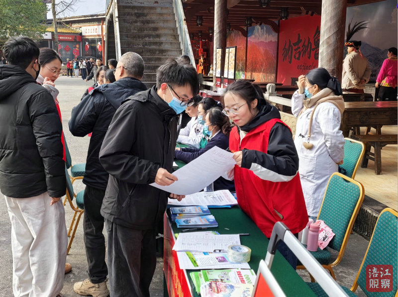在会场的一侧,农特展销与新时代文明实践赶大集活动同步开展,北川老腊肉、高山蜂蜜、青梅酒等特色农产品吸引众多游客驻足选购,既为游客搭建了“带得走的乡愁”选购平台,也拓宽了农户增收渠道。现场还设有便民医疗服务点,医护人员为村民和游客提供免费身体检查服务。同时,通过宣传手册普及环境卫生治理、防范电信诈骗、森林防灭火、燃气使用等安全知识。