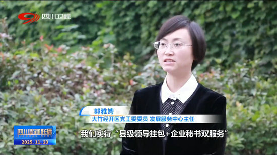 大竹经开区党工委委员、发展服务中心主任 郭雅娉:我们实行“县级领导挂包+企业秘书双服务”。今年,已收集解决资料审批、要素保障、融资需求等诉求126件,不仅缩短了项目投产、达产时间,也让我们民营企业感受到大竹产业发展的诚意。