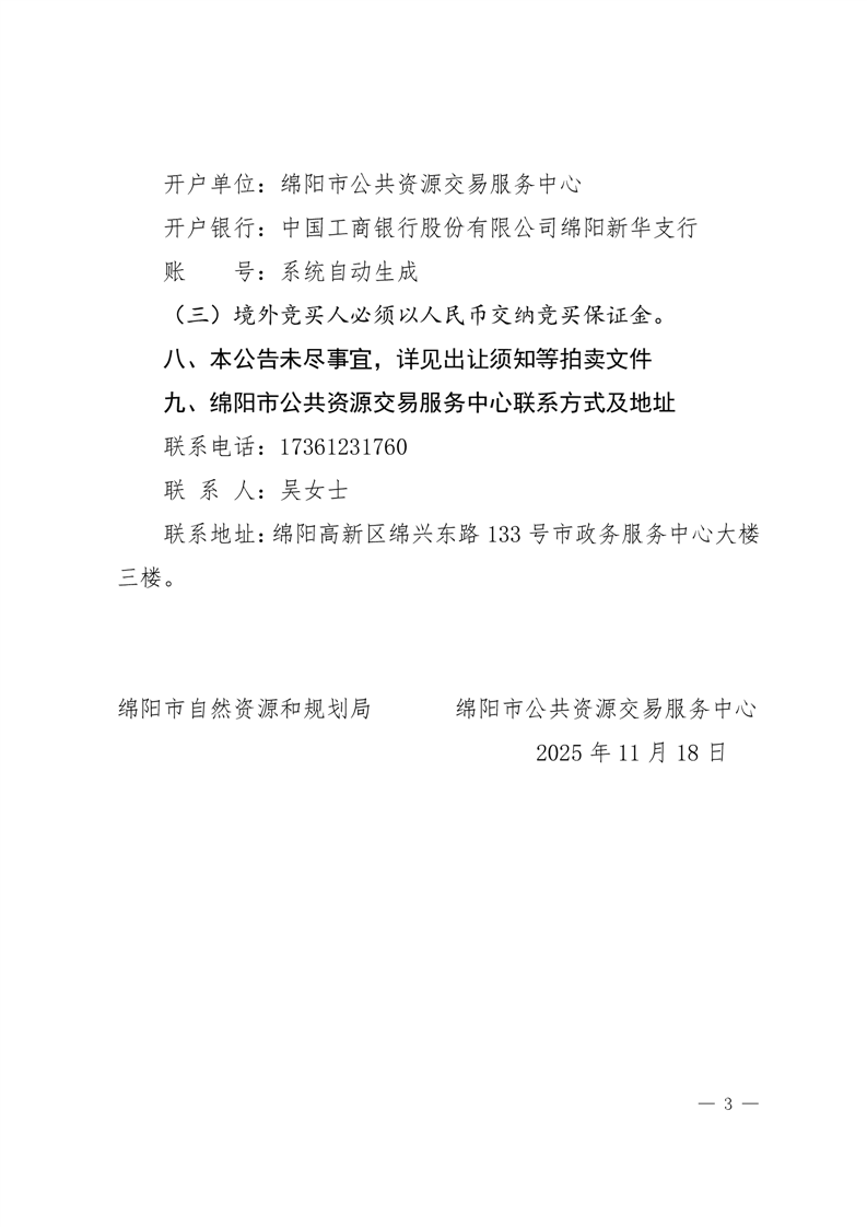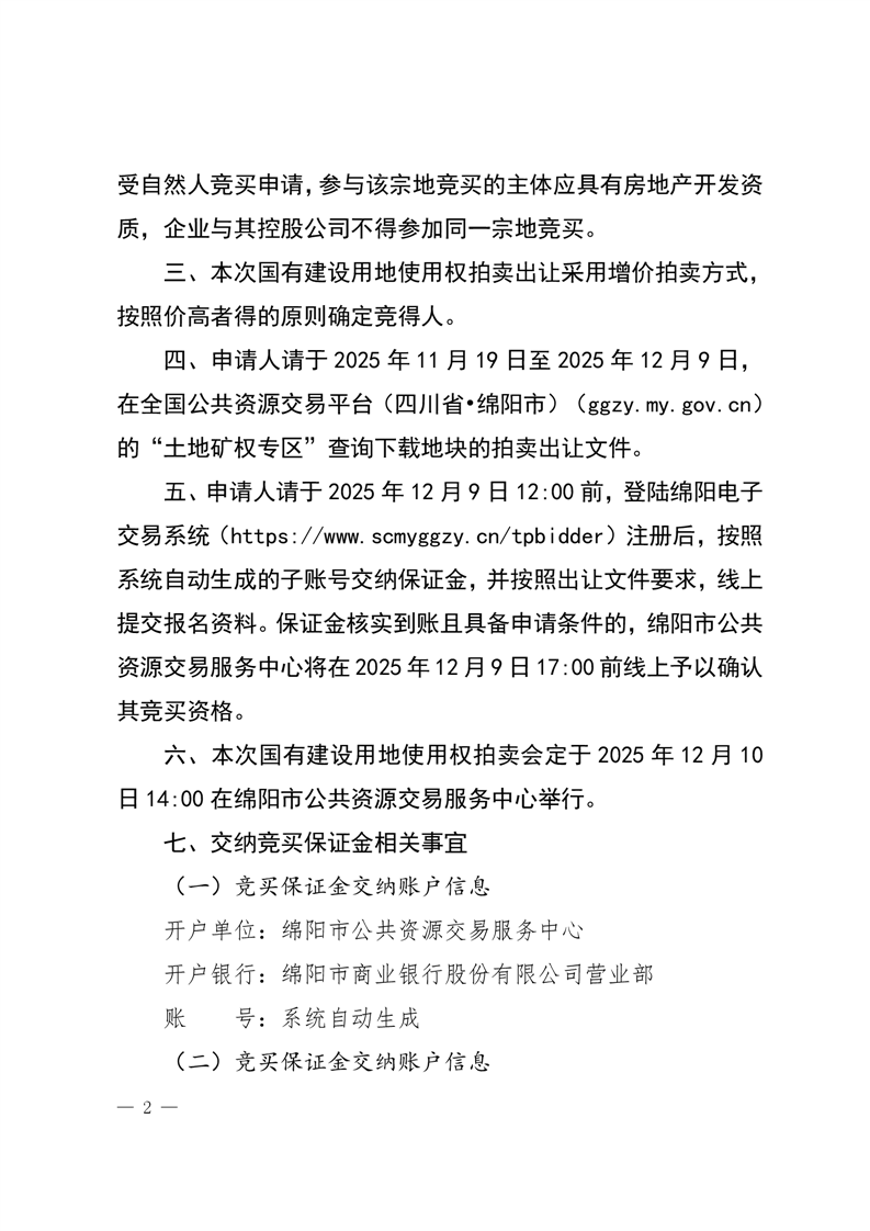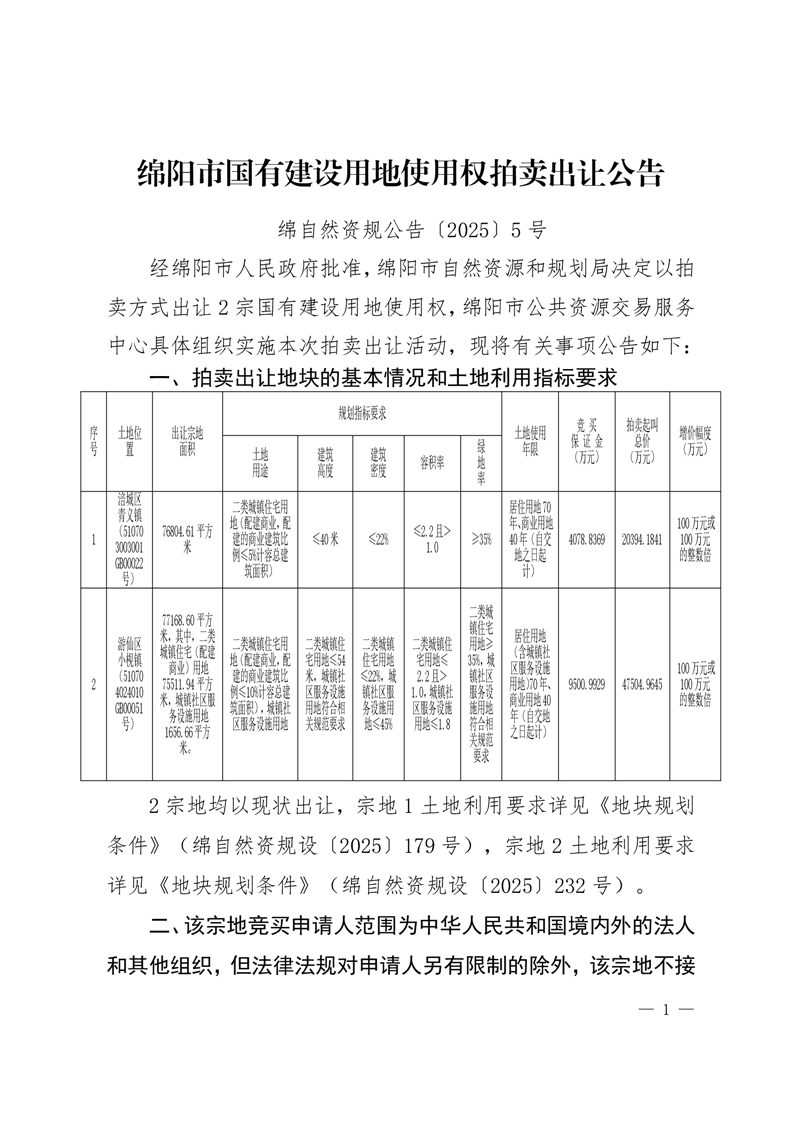 绵阳市国有建设用地使用权拍卖出让公告(绵自然资规公告〔2025〕5号)