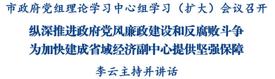 绵阳新闻网讯 11月24日,市政府党组理论学习中心组学习(扩大)会议召开,重点围绕习近平总书记关于党风廉政建设和反腐败斗争的重要论述开展学习。市委副书记、市政府党组书记、市长李云主持并讲话。