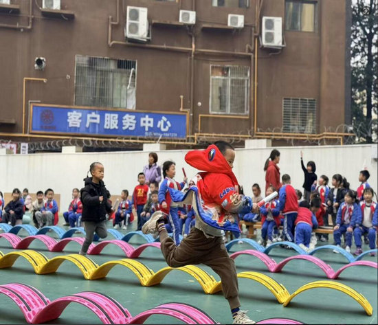 运动会赛场化身“怀旧游乐场”,分龄设计的游戏项目让不同年龄段的幼儿尽享运动乐趣,传统游戏与现代童趣碰