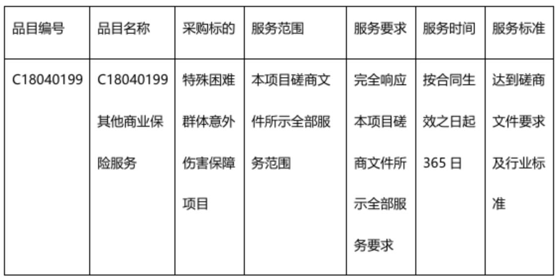 二、项目名称:特殊困难群体意外伤害保障项目(二次)