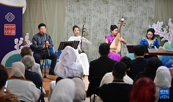 11月24日,在科威特哈瓦利省的科威特中国文化中心,中国音乐家为当地观众演奏乐曲。