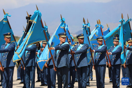 11月27日,在委内瑞拉马拉凯市的解放者空军基地,空军部队军人列队参加空军成立105周年纪念活动。新华社发(委内瑞拉国防部供图)