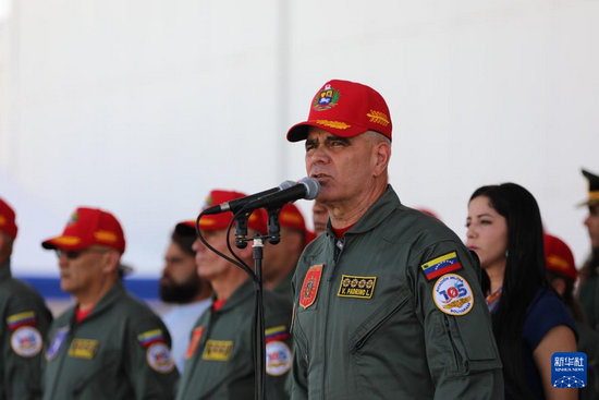 11月27日,在委内瑞拉马拉凯市的解放者空军基地,委内瑞拉国防部长洛佩斯在空军成立105周年纪念活动上发表讲话。新华社发(委内瑞拉国防部供图)