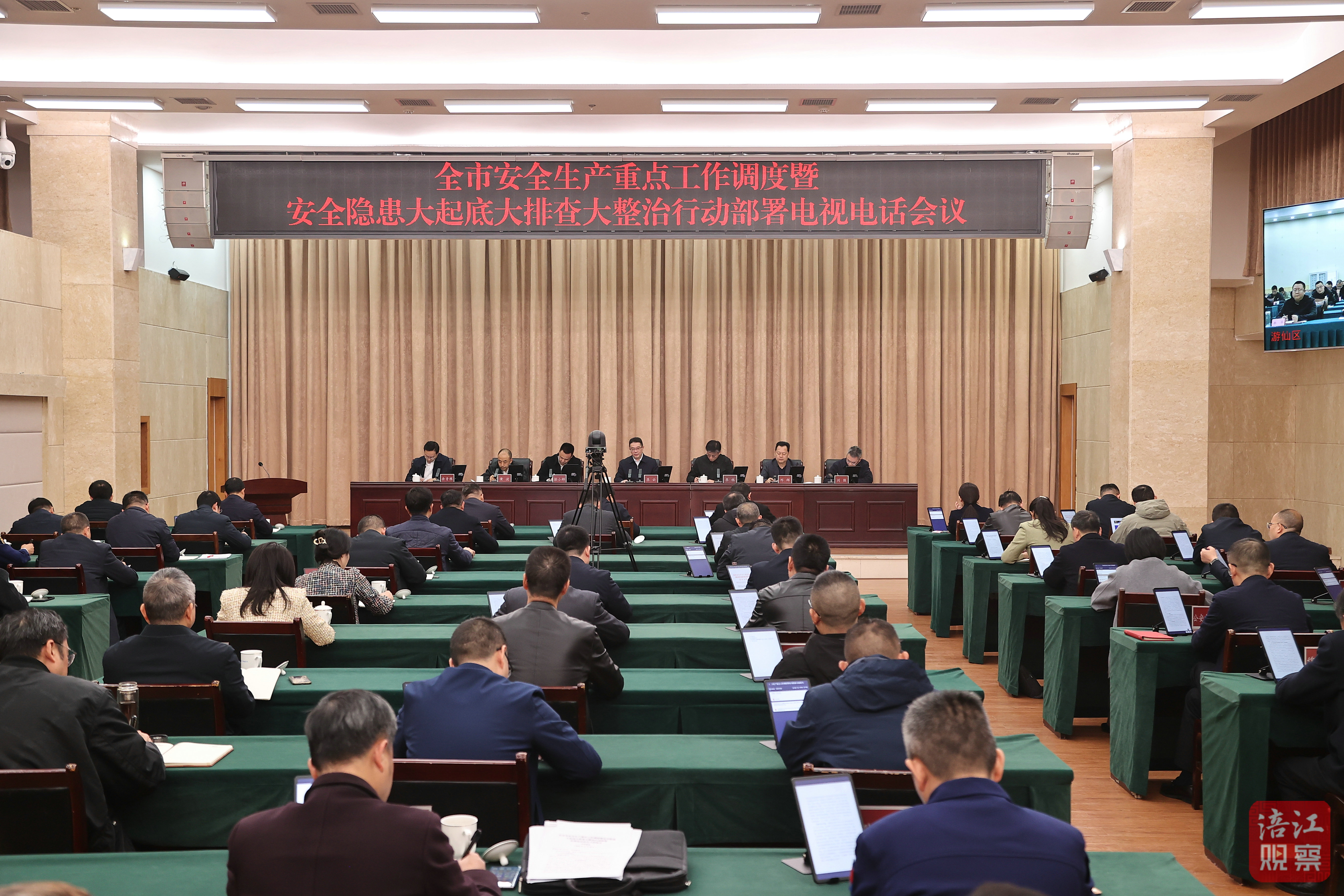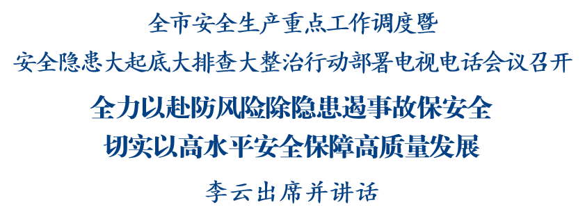 11月28日,全市安全生产重点工作调度暨安全隐患大起底大排查大整治行动部署电视电话会议召开,分析当前安全生产形势,安排部署下一步工作,市委副书记、市长李云出席会议并讲话,强调要深入学习贯彻习近平总书记关于安全生产的重要论述,认真落实中央和省市部署要求,时刻绷紧安全生产工作思想之弦,全力以赴防风险、除隐患、遏事故、保安全,切实以高水平安全保障高质量发展。