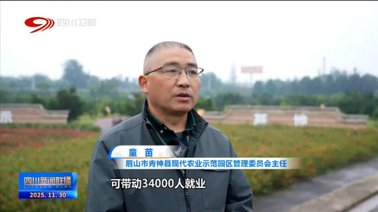 眉山市青神县现代农业示范园区管理委员会主任 童苗:从种植采摘、社会化服务、智慧化物流全产业链,可带动34000人就业,同时坚持农文旅发展,每年接待游客约3万人次。