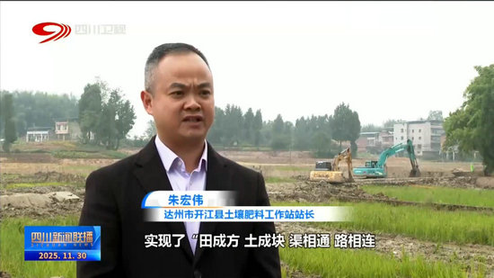 达州市开江县土壤肥料工作站站长 朱宏伟:实现了“田成方、土成块、渠相通、路相连、旱能灌、涝能排、宜机化”的目标,极大方便了农业生产。