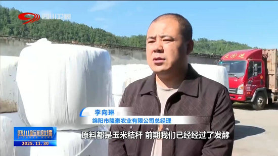绵阳市隆豪农业有限公司总经理 李向琳:原料都是玉米秸秆,前期我们已经经过了发酵,并加入了乳酸菌发酵剂,来提高牛羊的适口性。