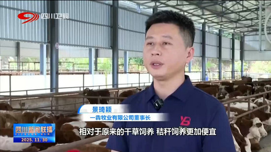 一犇牧业有限公司董事长 景琦颖:相对于原来的干草饲养,秸秆饲养更加便宜,每年每头牛可节约成本大概是在500至900元。秸秆饲料已成为我们养殖过程中最主要的饲料来源。