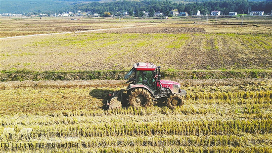 仙鹤镇石龙村冬小麦播种现场。记者 周钰 摄