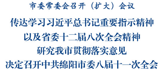会议决定,今年12月上旬召开中共绵阳市委八届十一次全会,深入贯彻党的二十届四中全会精神,认真落实省委十二届八次全会精神,研究关于制定绵阳市国民经济和社会发展第十五个五年规划的建议。