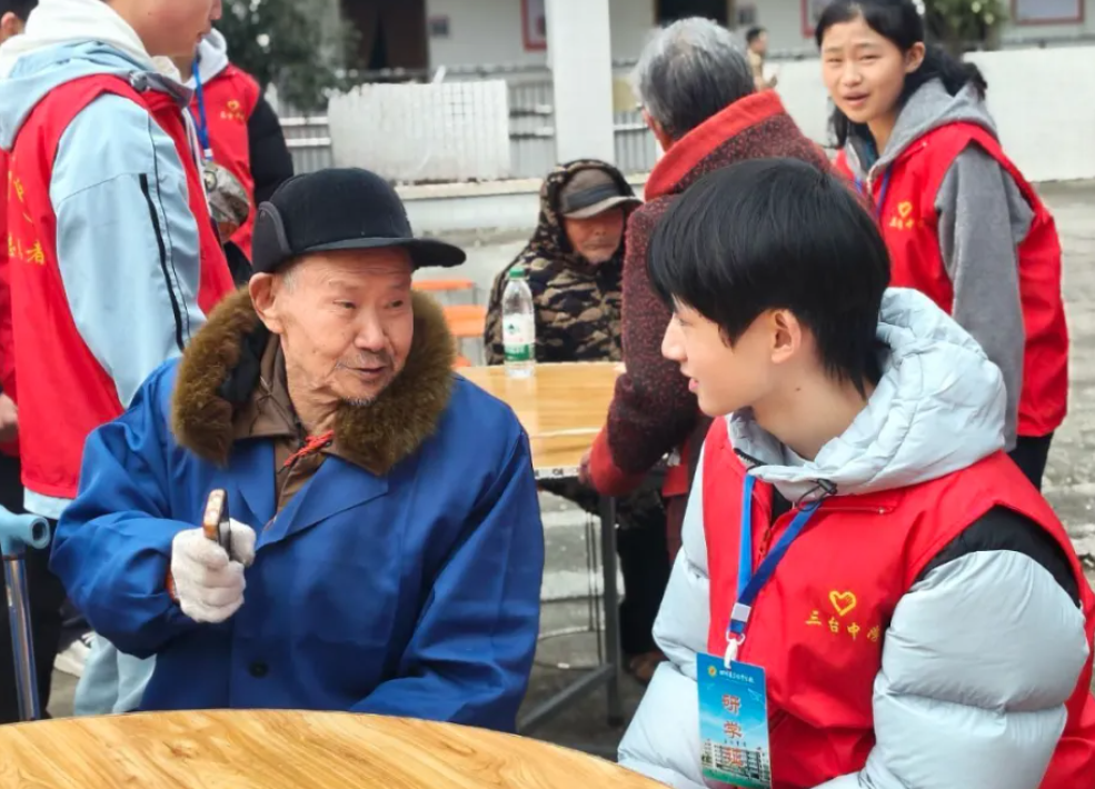 活动之初,古井镇副镇长顾苗苗分享了老一辈的奋斗故事与人生智慧,对青年一代寄予殷切厚望。该校相关负责人阐释本次活动的深意,勉励学子们既要奉献爱心,更要将“尊老敬老”的传统美德融入日常,内化于品德修养,充分彰显了三台中学“立德树人”的教育初心。一场简短的仪式奠定了温情基调,搭建起两代人情感与精神的沟通桥梁,让学子们在倾听中感悟过去、懂得感恩。