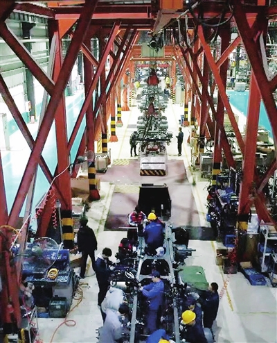 日前,在江油高新区的四川陆亨能源科技有限公司生产车间内,焊工正通过智能焊接机械臂对受热面管束进行拼接。 记者 陈元松 摄