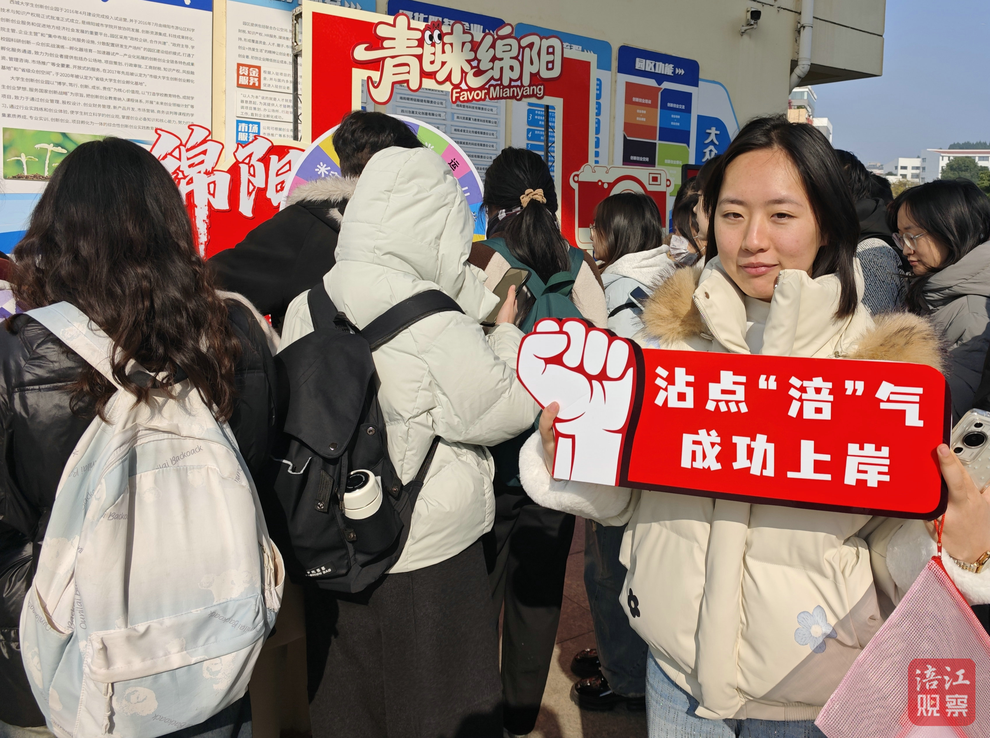 12月7日,四川省2026年度公开考试录用公务员笔试收官之日,绵阳13个考点外,涪江观察推广展位格外热闹。
