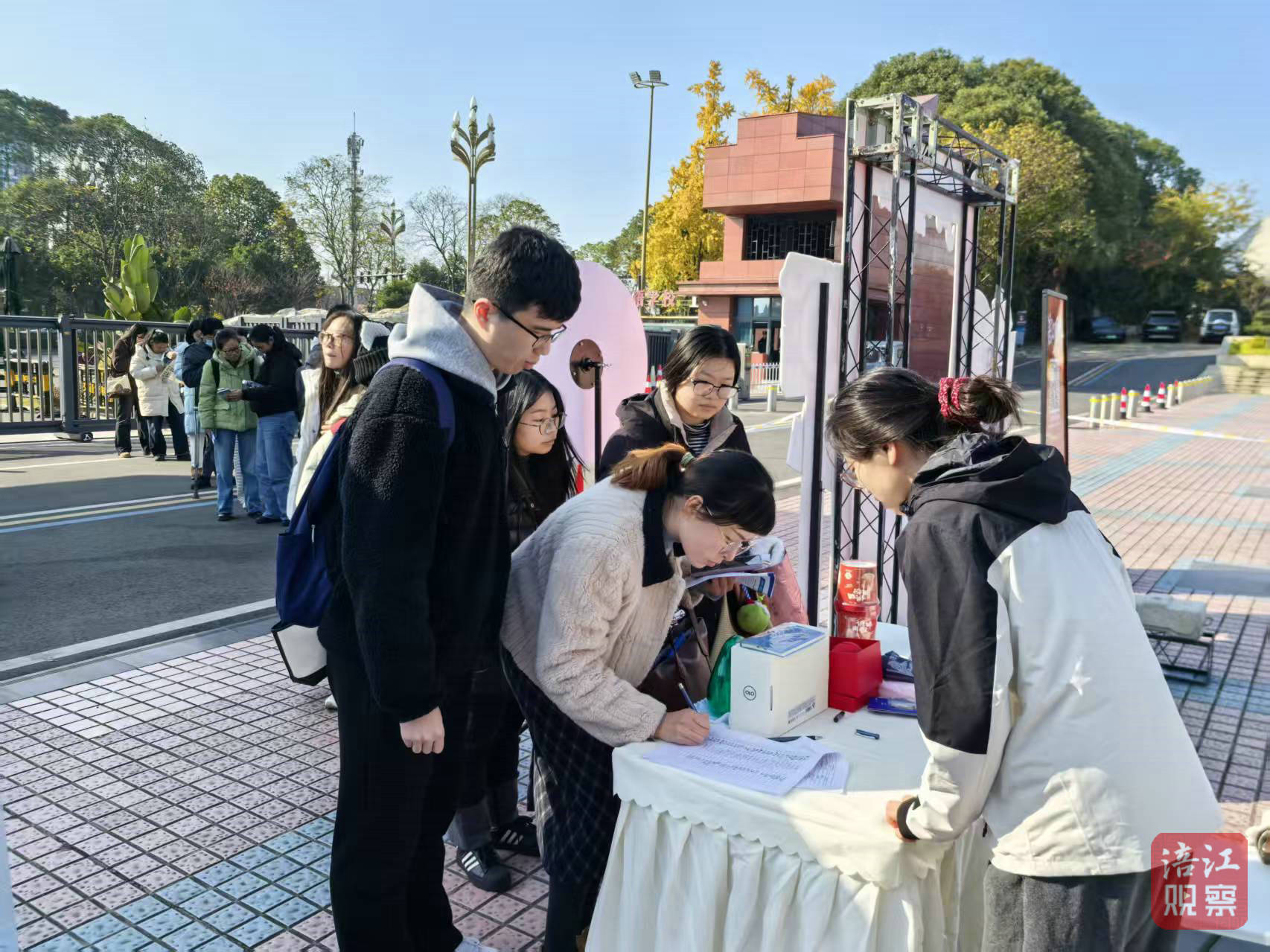 现场,拱门展架醒目矗立,“沾点‘涪’气,成功上岸”等祝福手牌备受考生青睐,大家争相与之合影。下载注册涪江观察客户端的队伍排起小长龙,考生们迫不及待排队参与转盘抽奖。