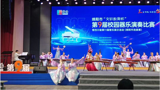绵阳新闻网讯 近日,绵阳市第九届校园器乐比赛圆满落幕,绵阳市实验中学(绵阳七中)选送的参赛作品《庆丰收》凭借精湛的演奏技艺、饱满的情感表达及出色的艺术表现力,在全市众多优秀参赛作品中脱颖而出,成功斩获大赛一等奖。